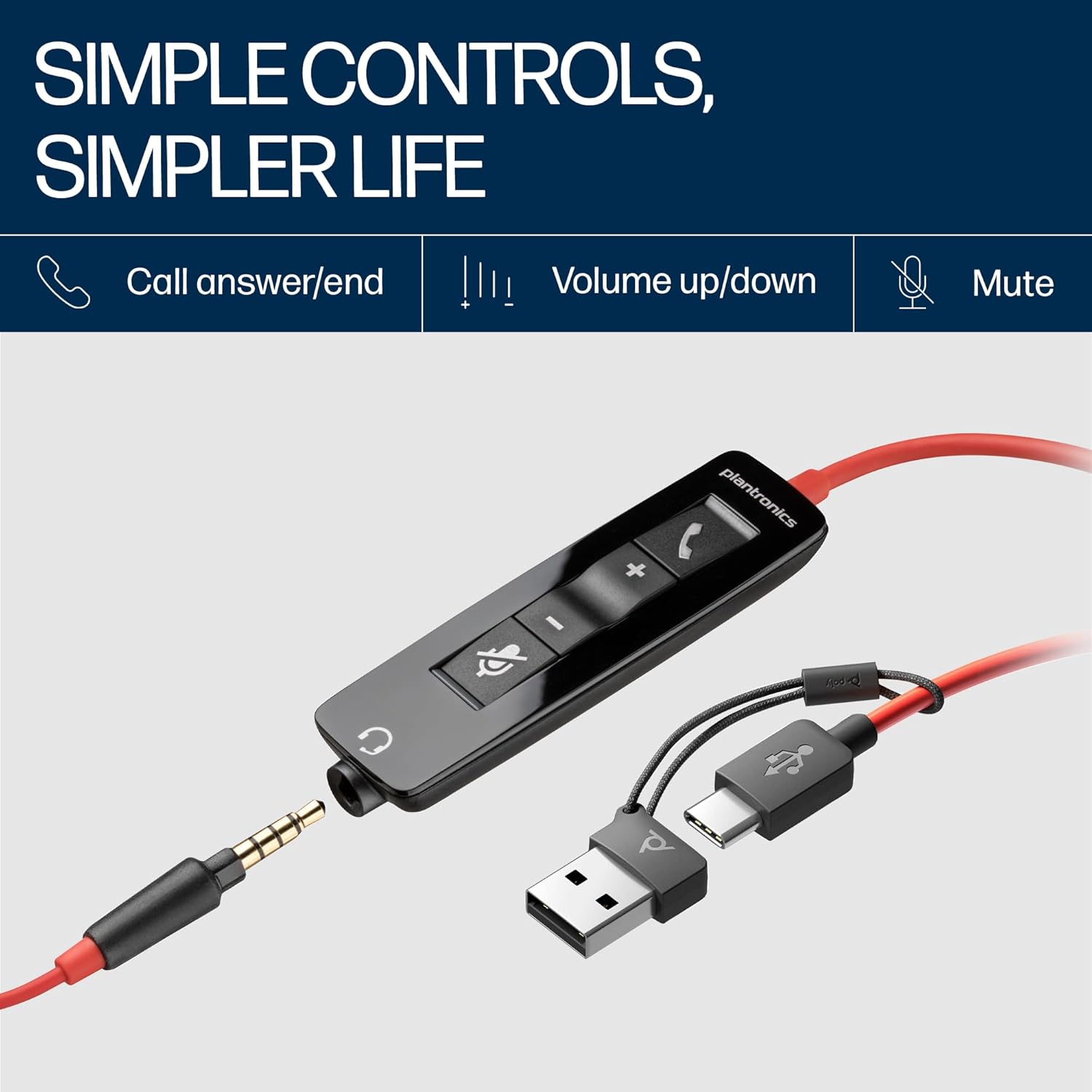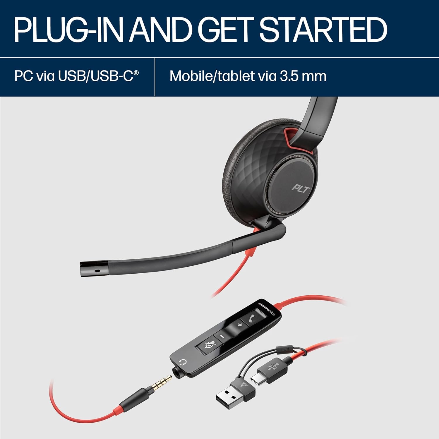 Poly (Plantronics) Blackwire 5220 Stereo Headset, Over-Ear w/Noise-canceling mic, 164g, Connect to Mobile/Tablet via 3.5 mm and PC via USB-C/A, Dynamic EQ, Hi-Fi Stereo, Black, 7S4B3AA (UNBOXED) 🥇