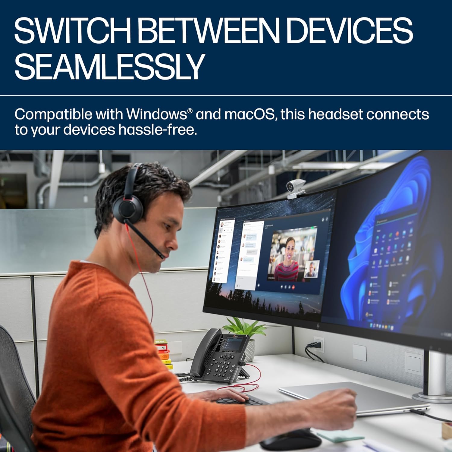 • 【High-quality audio】Enjoy clear audio with the headset's dynamic EQ, enhanced digital signal processing (DSP), and PC wideband audio with noise-canceling mic for excellent communication every time.