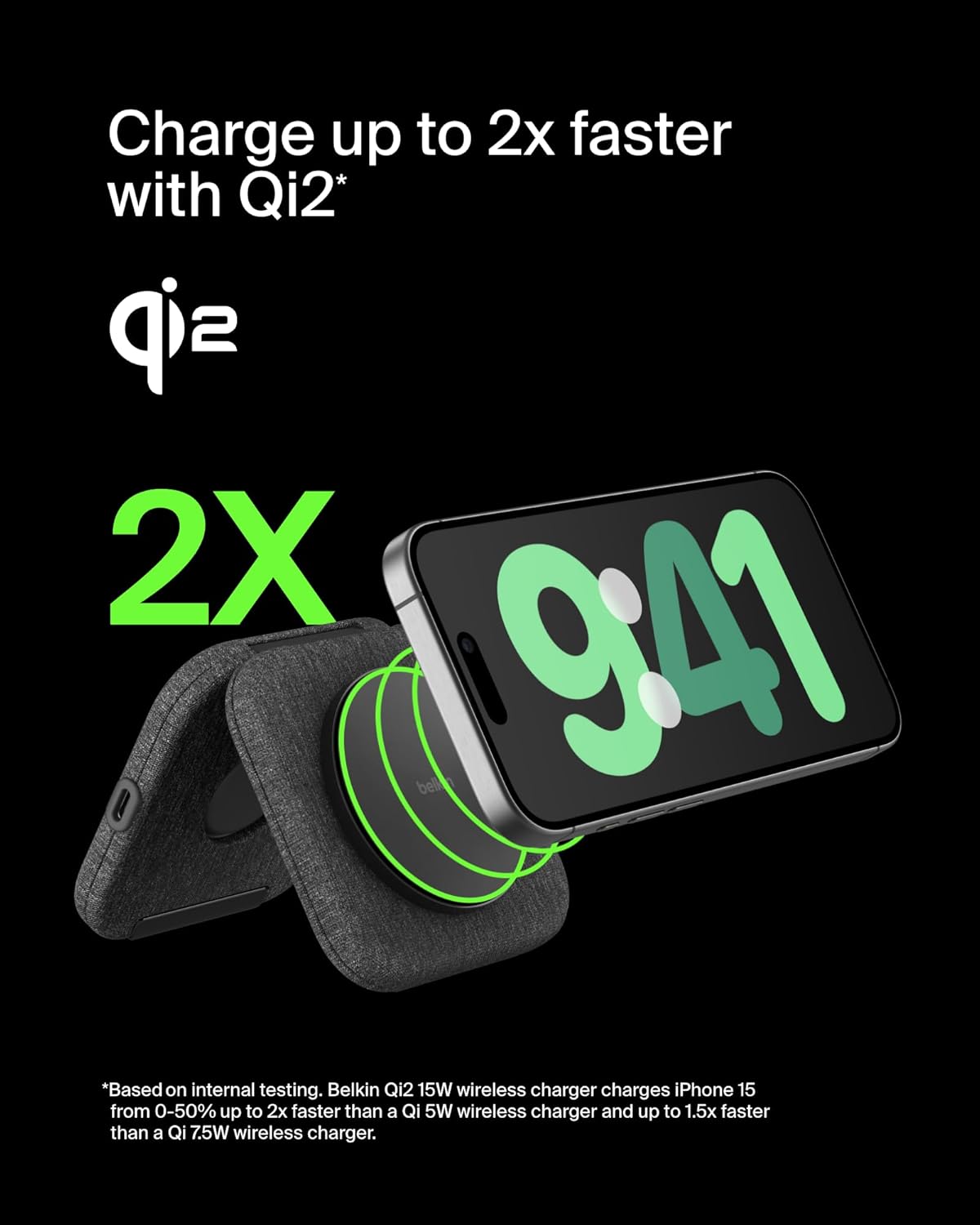• FAST CHARGE W/ THE LATEST Qi2 TECHNOLOGY: Conveniently place your phone on the magnetic charging pad to fast charge your iPhone or Qi2 compatible device up to 15W. With Qi2, you get up to 2x faster wireless charging* so you can spend less time waiting!