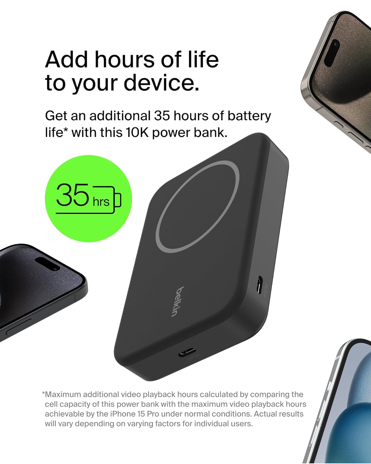 Belkin Qi2 10000 mAh Magsafe Wireless Power Bank | 15W Wireless Fast Charging, Compatible w/iPhone 17, Air, Pro, Pro Max, Google Pixel 10, etc. | 2 Years Warranty | Black (BRAND NEW/SEALED)