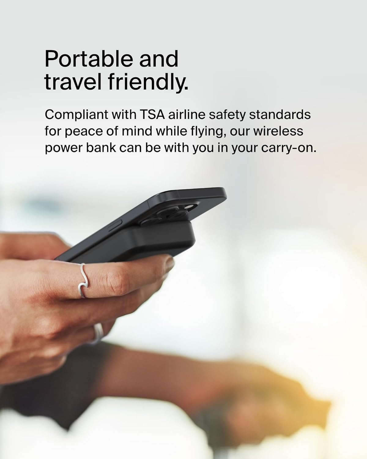 • Travel friendly with cable included: Compliant with TSA airline safety standards for peace of mind while flying, our wireless power bank can be with you in your carry-on. We’ve included a USB-C to USB-C cable so you can start charging right away.