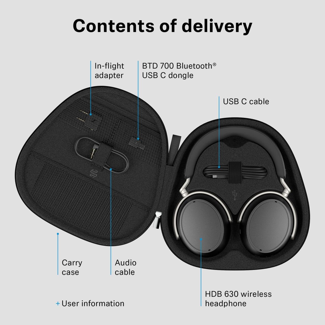 With the included BTD 700 Bluetooth USB-C dongle, you get high-resolution wireless audio from most phones, tablets, and laptops. Regardless of your device’s native codecs, the dongle unlocks brilliant aptX Adaptive performance, effectively upgrading your device to deliver hi-res sound straight to your HDB 630.