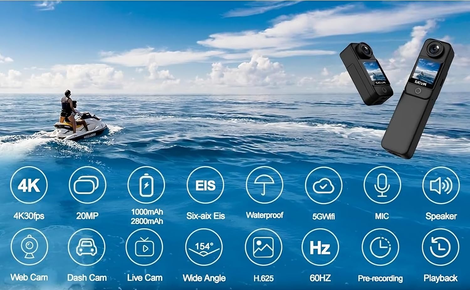 • 【98ft/30m Underwater Camera】: The pocket camera supports the use with the SJCAM waterproof case, providing waterproof camera protection for water activities, snorkeling and scuba diving enthusiasts. Underwater 4K action video camera. Note: the gripping camera doesn't support a waterproof case.