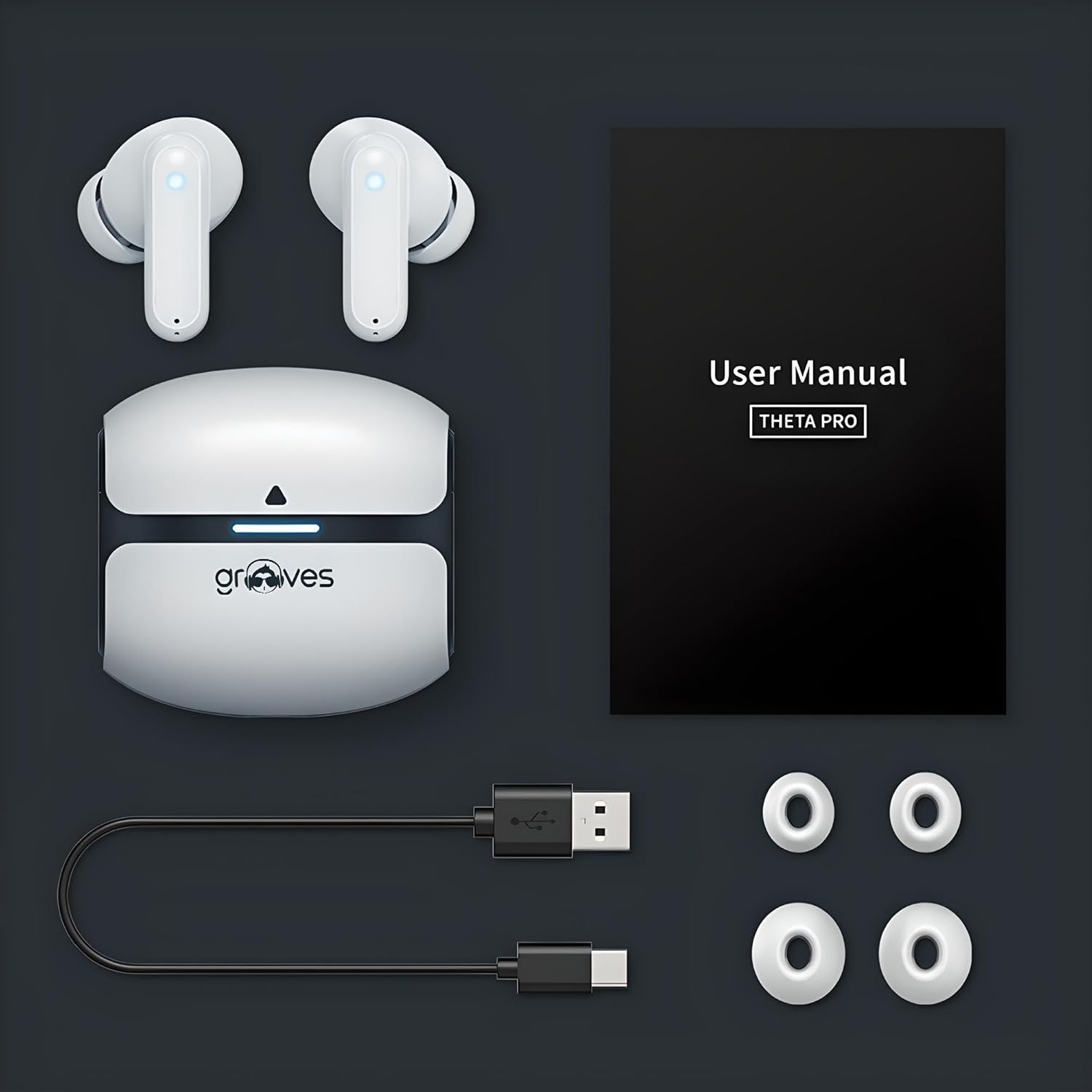 Model Name GROOVES Theta Dynamic TWS Earbuds with IPX-5,30 H Playtime,AAC,BT 5.3,C-Type & Fast Charging (White)