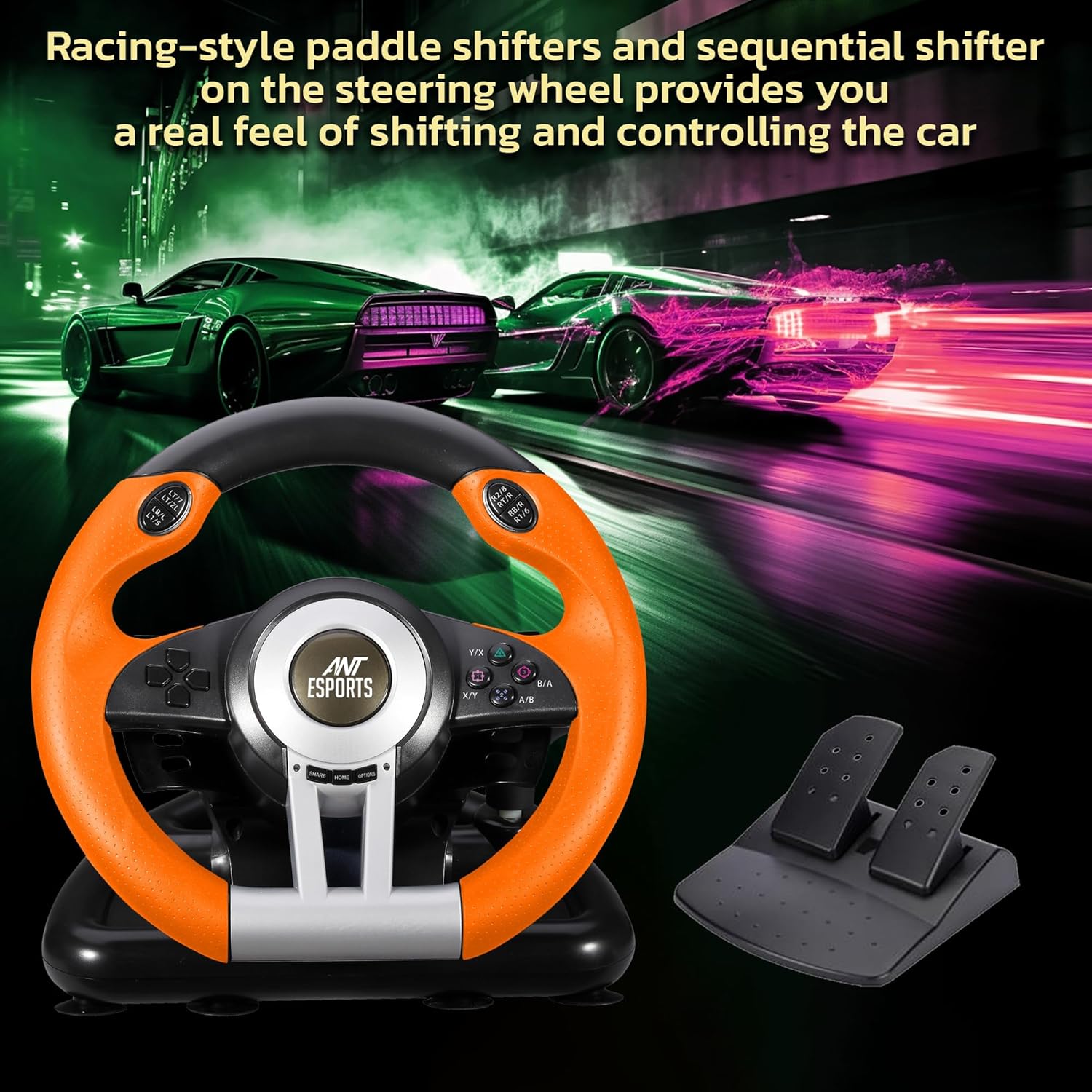 Ant Esports GW V3 PC Steering Wheel 270° Degree Vibration Gaming Steering Wheel with Shifter and Pedal for PC, Xbox Series X|S, Xbox One (UNBOXED) 🥇