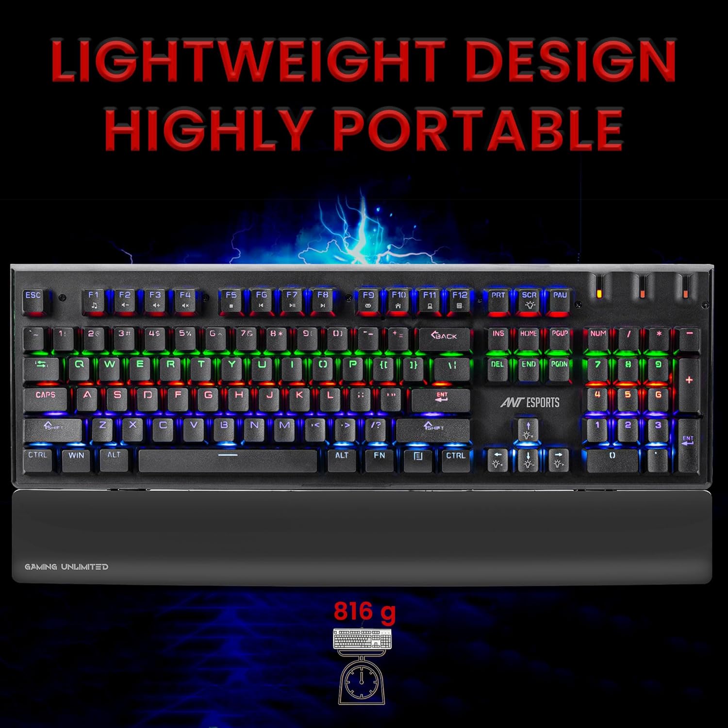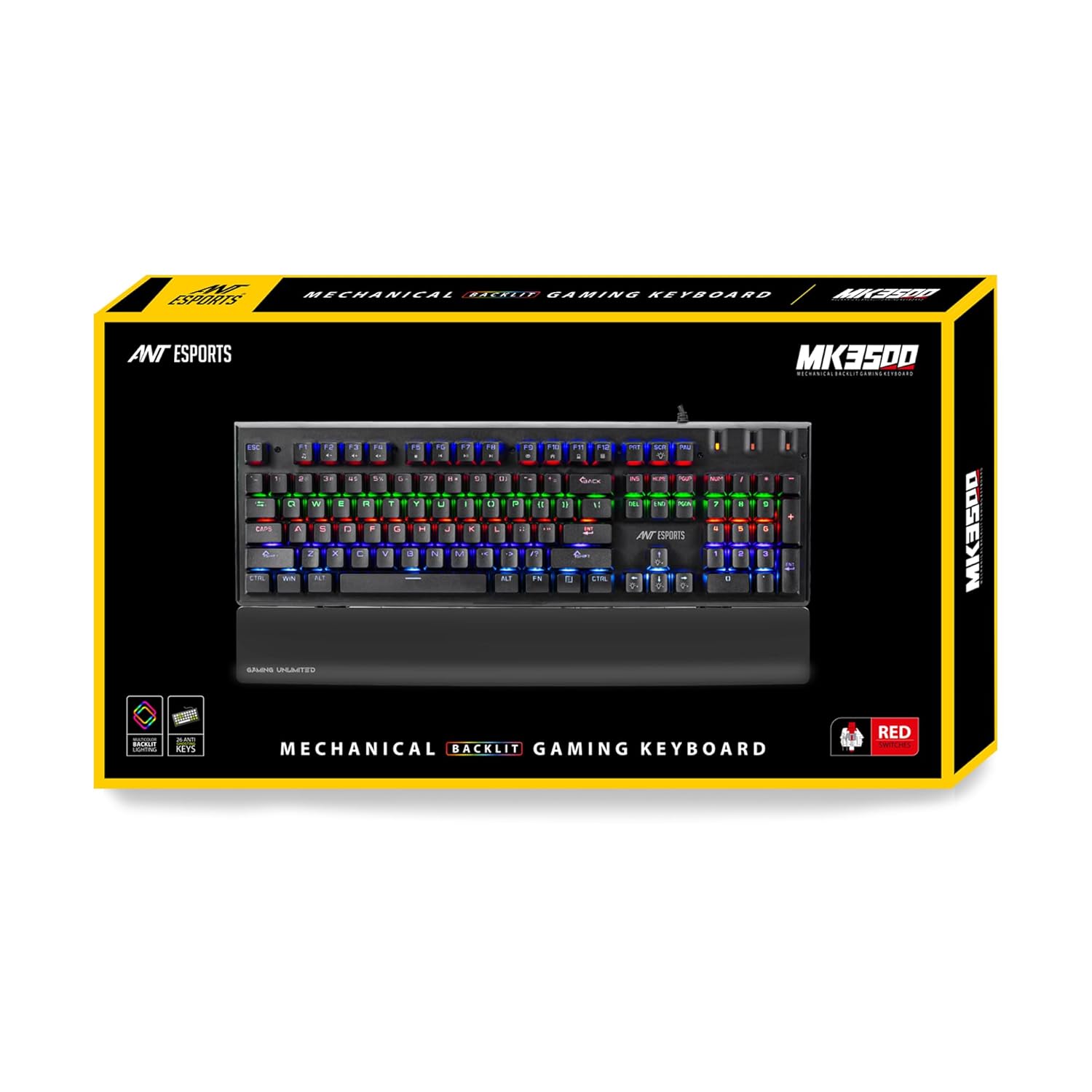Ant Esports MK3500 Mechanical Gaming Keyboard, Red Linear Switches, RGB Rainbow Backlit, 26 Anti Ghosting keys, Removable Wrist Rest,Square Keycaps, Full Size Wired Keyboard for Windows/Mac/PC – Black (UNBOXED) 🥇