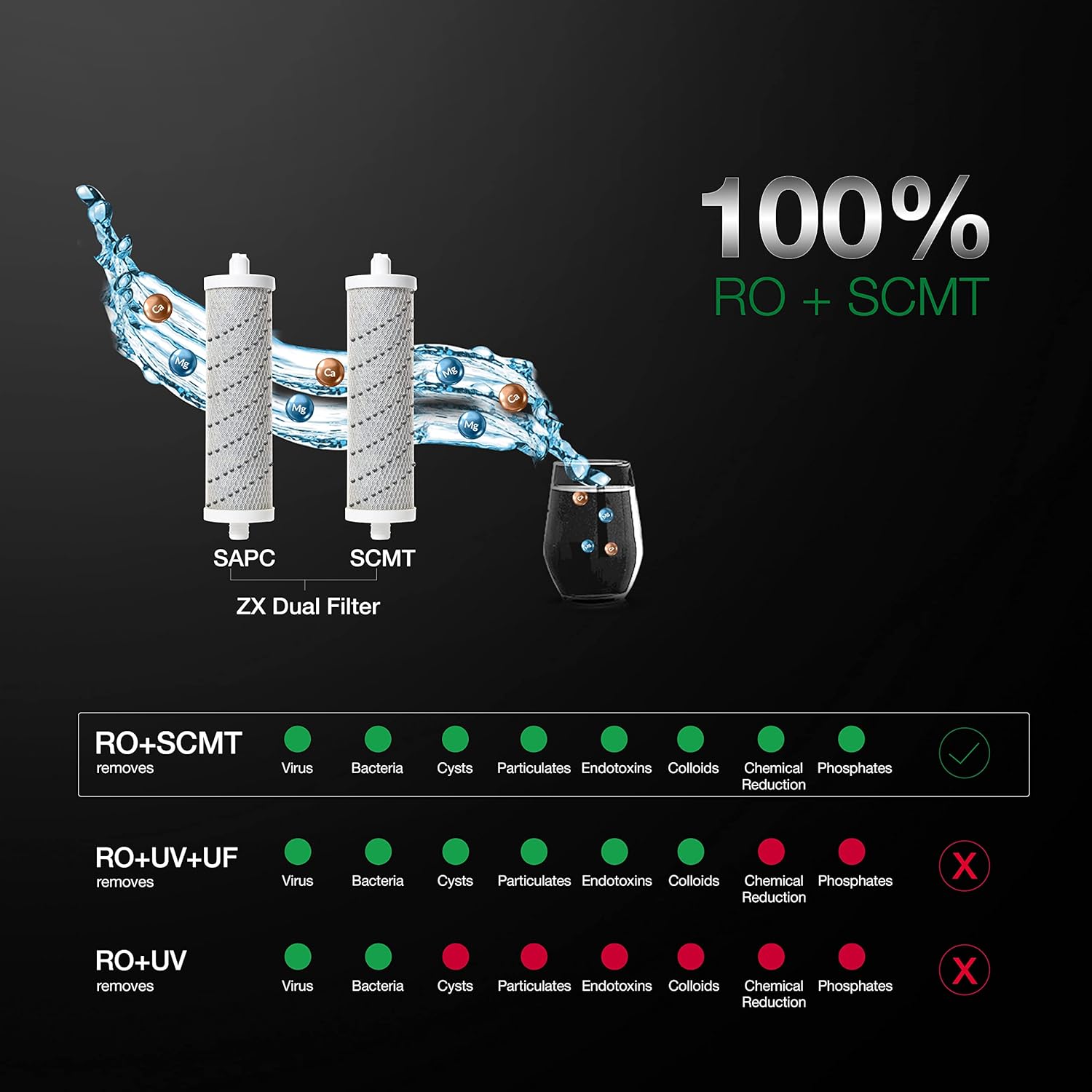 • 8 Stage Purification: This advanced system provides your family with purified baby safe drinking water. The Patented Side Stream RO Membrane ensures 100% water that filters through is safeguarded from chemical impurities, viruses and bacterias, complemented with the Dual Filter of SAPC & SCMT that enhances the overall quality of the water.
