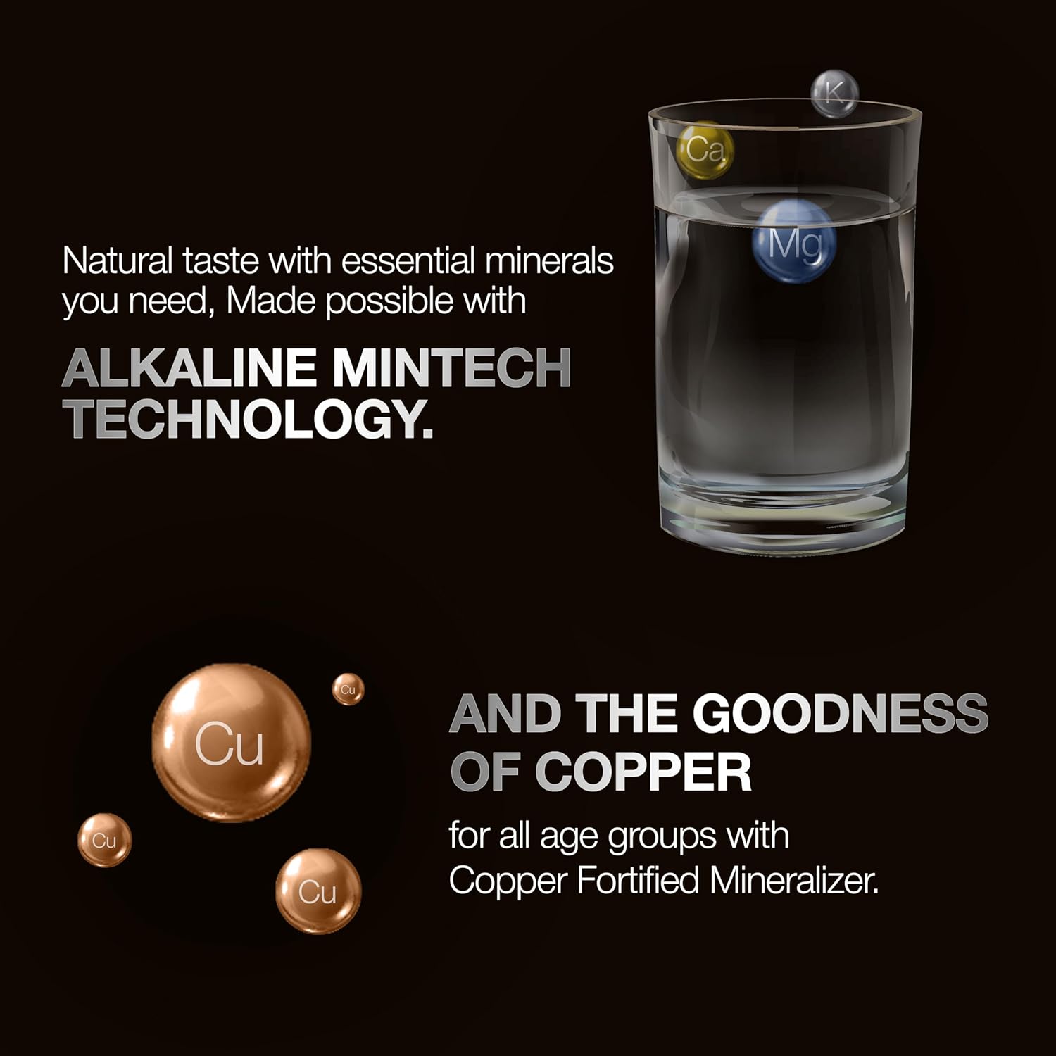 • Copper Fortified Mineralised + Alkaline MIN-TECH : The Copper Fortified Mineralizer (Copper+Alkaline MIN-TECH) fitted into the A. O. Smith Z9 Pro's 8 Stage Purification ensures you instantly get heated water of balanced mineral composition. With the benefits of copper in it, the water retains its natural taste and balances pH securing the waters purity to its highest efficiency