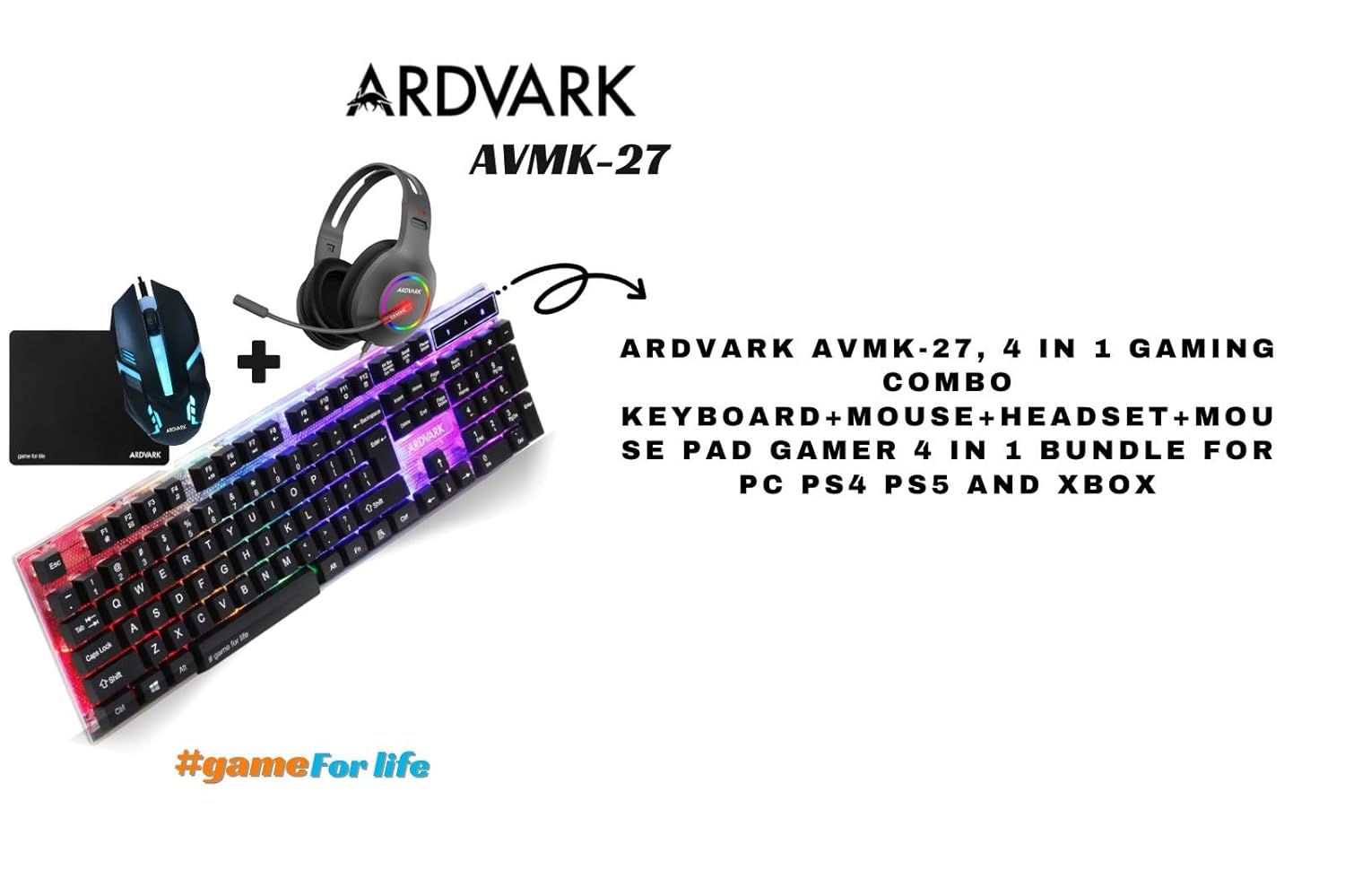 ARDVARK AVMK-27, 4 in 1 Combo | Gaming Keyboard and Mouse Combo, RGB Backlit Wired Gaming Mouse and Keyboard, Mouse pad, Gaming Headset, Gamer 4 in 1 Bundle for PC PS4 PS5 and Xbox. (UNBOXED) 🥇