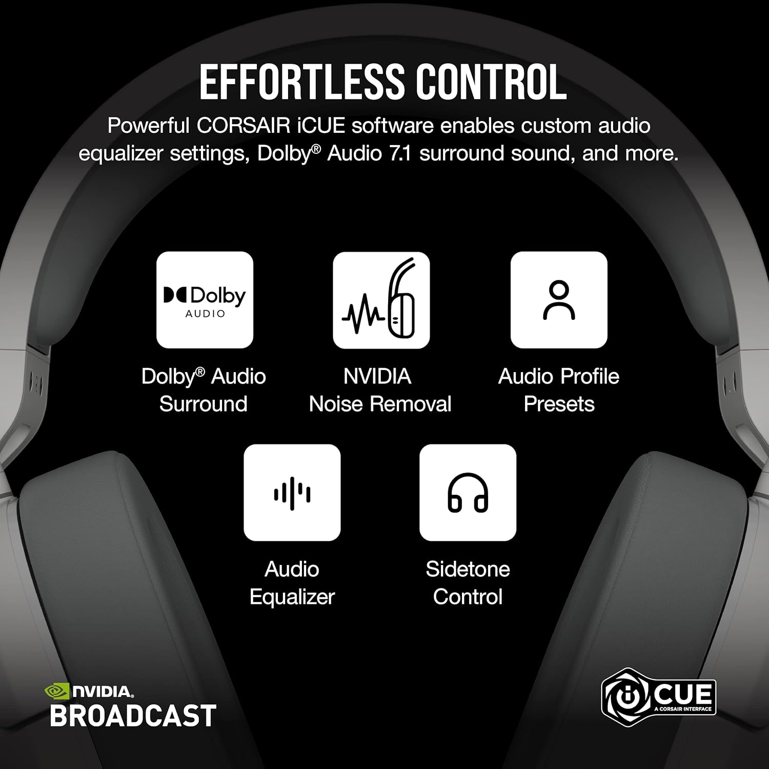 Corsair HS55 Wireless Gaming Headset, White. Low-Latency 2.4Ghz Wireless or Bluetooth, Dolby ® Audio 7.1 Surround Sound, Omni-Directional Microphone with Flip-to-Mute Function (UNBOXED) 🥇
