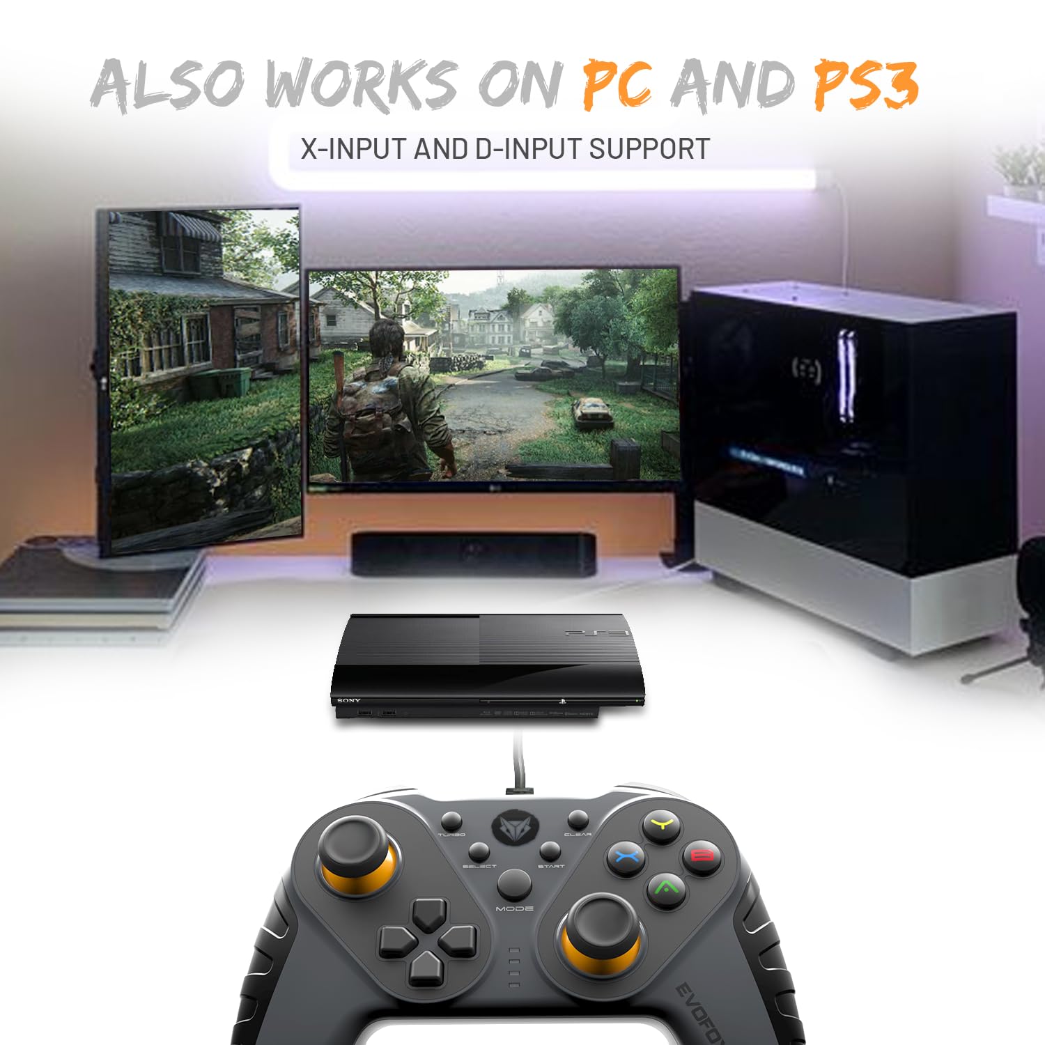 EvoFox Elite Ops Wired Gaming Controller for PC, Android TV and PS3 with 2.4m Long Cable | Dual Vibration Rumble Motors | Zero Lag Connectivity with Plug and Play functionality |2.4m Long Cable, X-Input & D-Input | Black (UNBOXED) 🥇