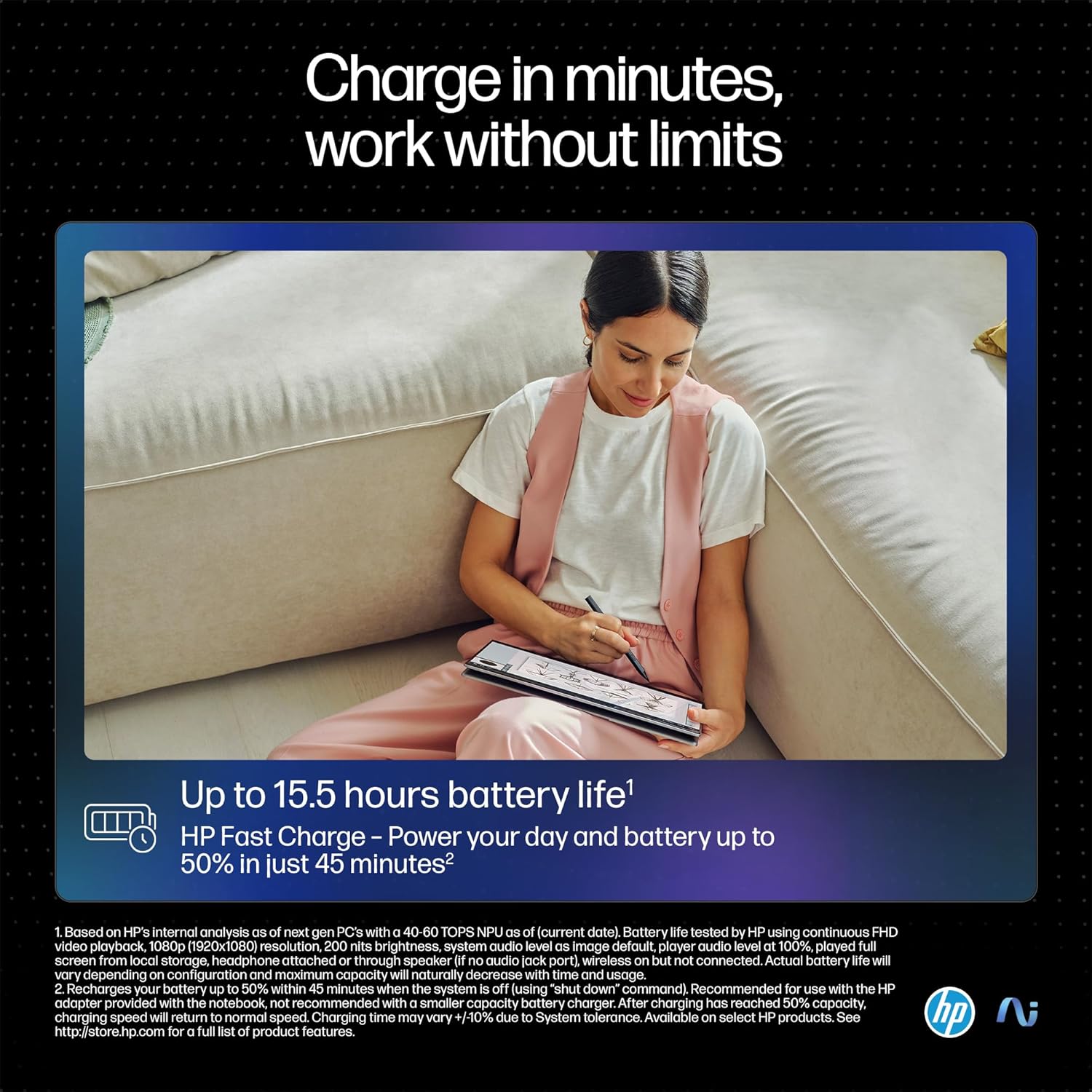 • 【Long battery life】Go all day long with the 6-cell, 64Wh battery that keeps you powered for up to 15 hours and 30 mins. No time to pause and wait? Charge your device up to 50% in 45 mins.