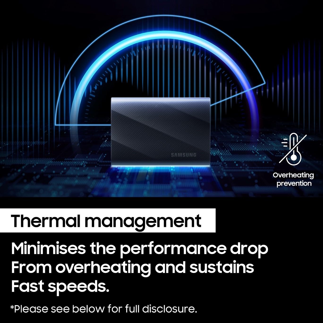 • DYNAMIC THERMAL GUARD: When you’re elbow-deep in a passion project, the T9 Portable SSD stays cool; Its advanced thermal solution withstands and controls heat to keep the SSD at ideal temperatures—even in heavy use**