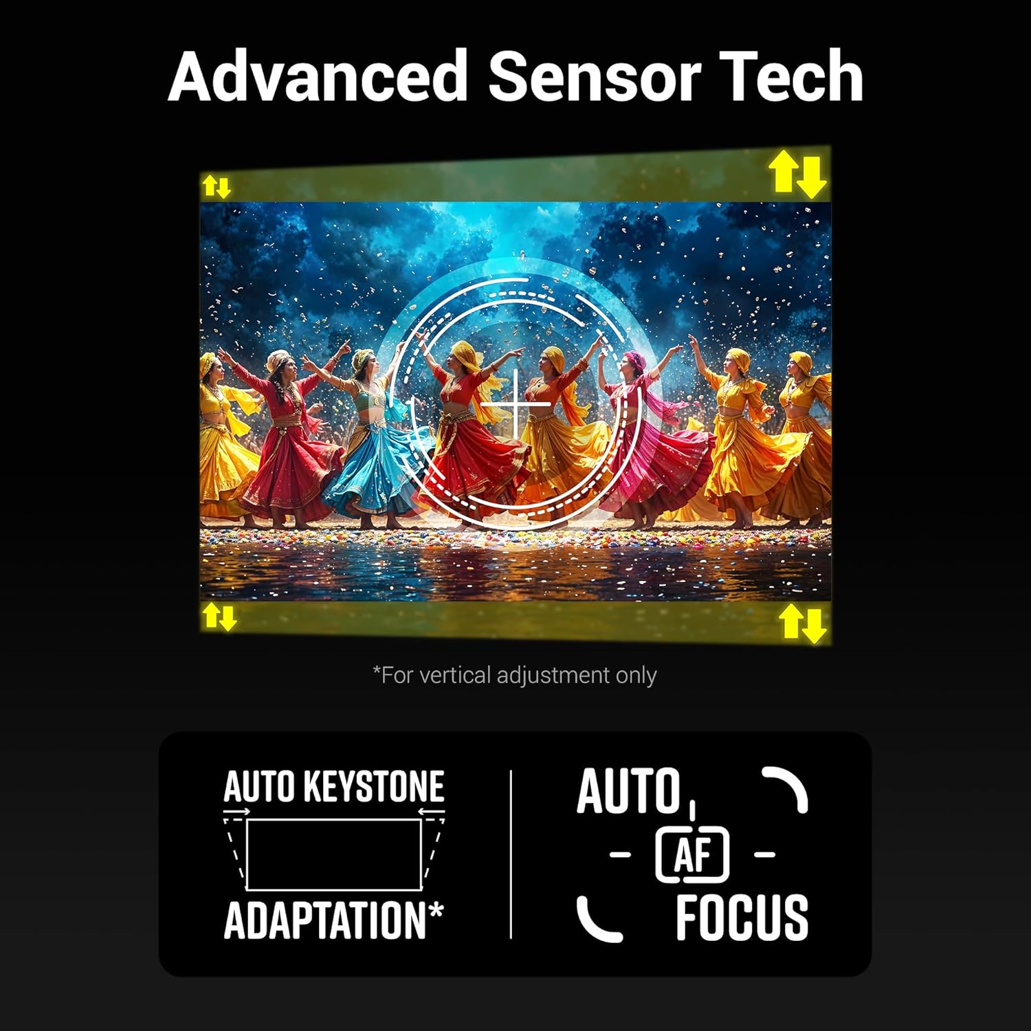 • Auto focus and auto keystone: The projector features autofocus and auto keystone adaptation* (* for vertical adjustment only), ensuring optimal image alignment without manual adjustments.
