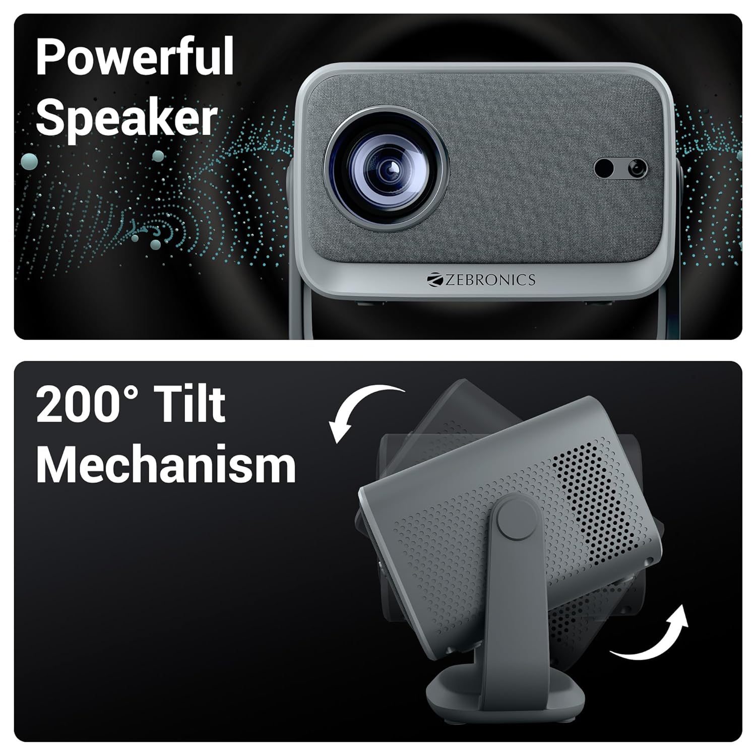 • Screen size: Enjoy a premium home theater experience with the smart ZEB-Pixaplay 67 projector, offering up to 381 cm(150 inches) projection and a 200° tilt for versatile, large-screen viewing.