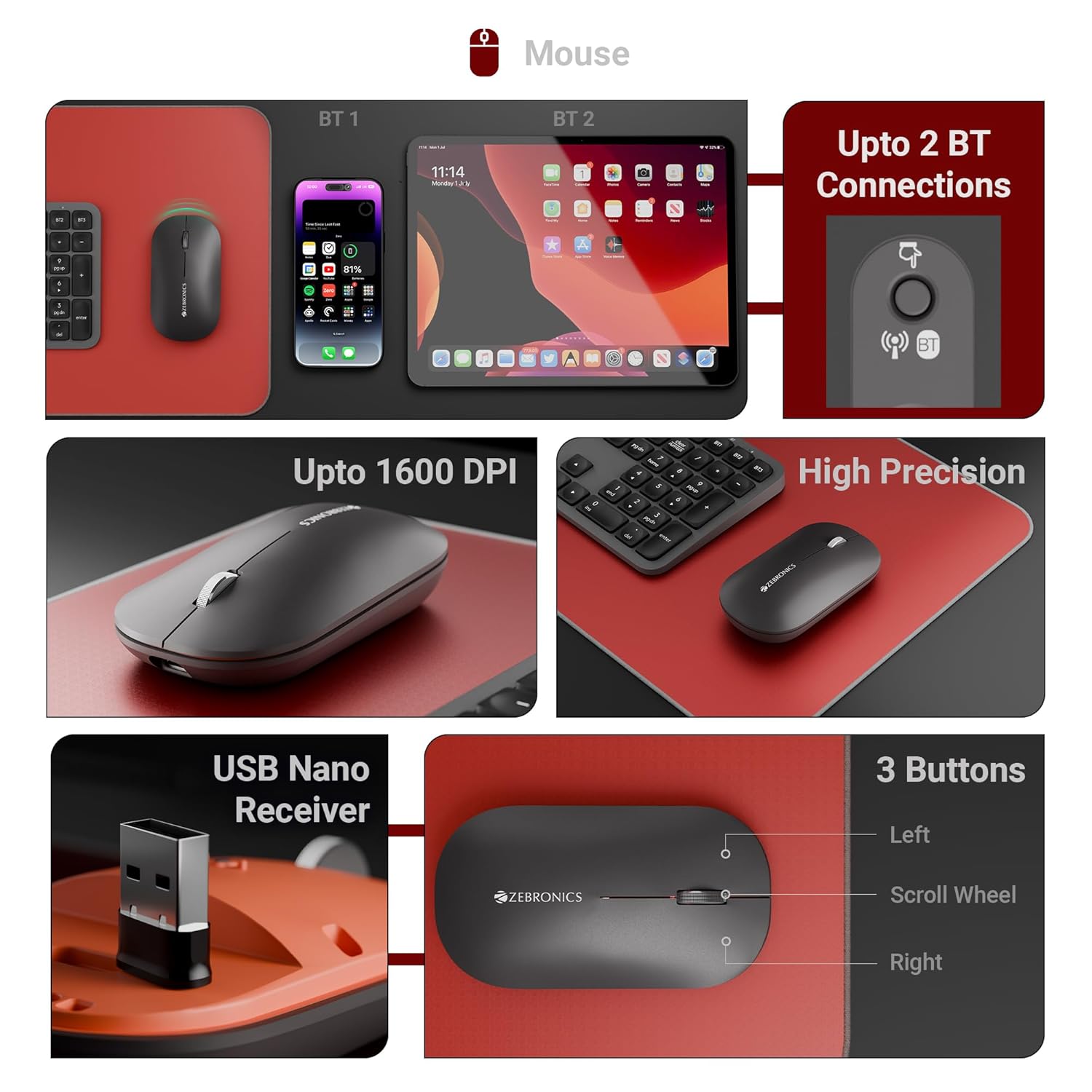 Zebronics Wireless Keyboard & Mouse Combo, 2.4GHz + Multi BT Toggle, Scissor Switch, Mac & Win Toggle, UV Coated Keys, Multimedia Keys, Upto 1600DPI, Type-C Charging, High Precision (Companion 5002) (UNBOXED) 🥇